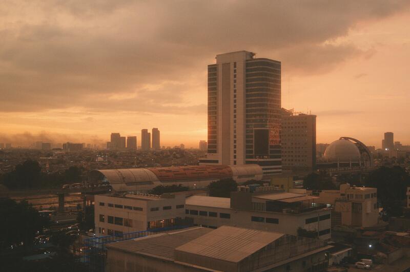 December 12th, 2025—Sunset with smokes from a fire in a food court near Kalibata City.